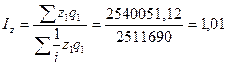 или 101%. Индекс показывает, что себестоимость повысилась на 1%, индекс совпадает с агрегатным, следовательно расчеты были проведены верно.