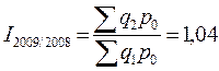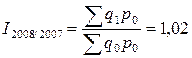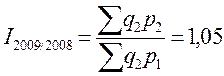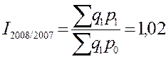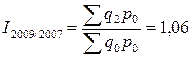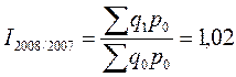 На основе данных таблицы 5 можно рассчитать индекс стоимости и индекс физического объема продукции, весами в которых будут являться цены 2007 года.