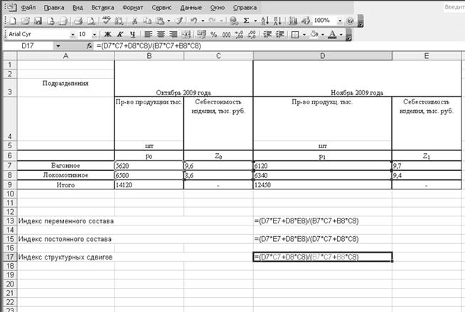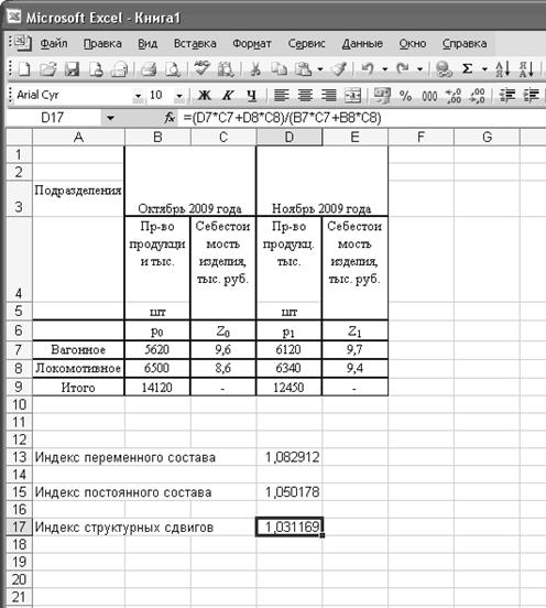 Рис.3. Статистические расчеты индексов переменного состава, постоянного состава, структурных сдвигов