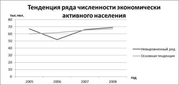 - основной тенденцией ряда динамики является увеличение численности экономически активного населения за рассматриваемый период. Этот позитивный тренд является свидетельством благоприятной ситуации на рынке труда;