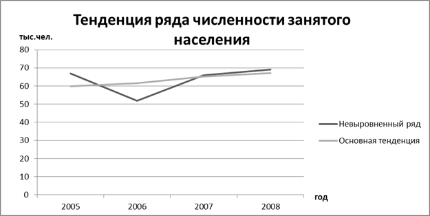 Как видно из графика, основной тенденцией ряда динамики является увеличение численности экономически активного населения за рассматриваемый период. Этот позитивный тренд является свидетельством благоприятной ситуации на рынке труда.