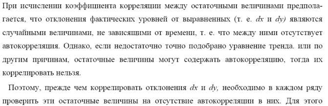 Если результаты расчета коэффициентов автокорреляции будут указывать на наличие автокорреляции уровней исходных рядов динамики, то для дальнейшего анализа корреляционной связи между рядами динамики нужно исключить эту автокорреляцию.