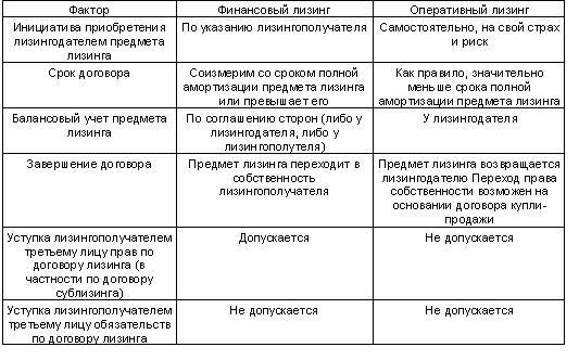 1.3. Основные виды лизинга и область их применения
