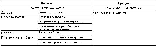 Это связано с тем, что проценты по кредиту банка у лизингополучателя относятся на себестоимость (в составе лизинговых платежей) и с повышением банковских ставок этот показатель играет все более значительную положительную роль в денежном потоке лизингополучателя, снижая налог на прибыль. У заемщика проценты по кредиту выплачиваются из прибыли и оказывают только отрицательное значение на денежный поток заемщика.