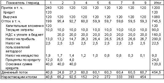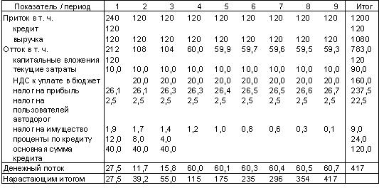 Выше отмечалось, что заемщик пользуется льготой по налогу на прибыль при погашении инвестиционного кредита. При отсутствии такой льготы денежный поток заемщика будет иной.