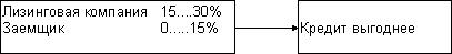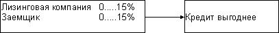 Лизинговая компания привлекает дешевые кредиты, до 15%, а заемщик свыше 15%. В этом случае лизинг выгоднее, чем кредит. Лизинговая компания привлекает дорогие кредиты, свыше 15%, а заемщик дешевые, до 15%. В этом случае кредит выгоднее, чем лизинг.