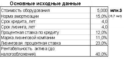 Практика анализа лизинговых проектов, указывает, что преимущество лизинга по сравнению с прямым кредитованием в значительной степени определяется отсутствием налоговых особенностей у лизингополучателя, сроками амортизации оборудования и рентабельностью производства.
