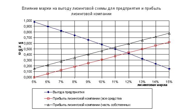 Полученная выгода может быть перераспределена между предприятием - лизингополучателем и лизинговой компанией за счет изменения в разумных пределах маржи лизинговой компании.