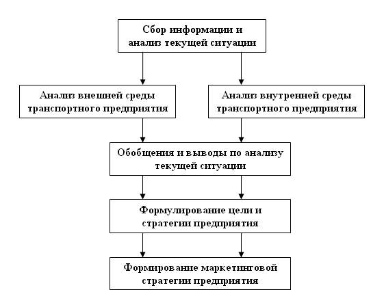 Рис. 1. Алгоритм разработки общей и маркетинговой стратегии транспортного предприятия