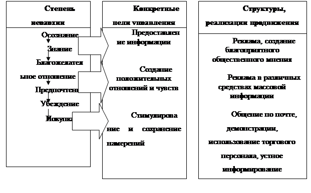 Цели продвижения являются – это стимулирование спроса и улучшение образа компании. Конкретные действия зависят от так называемой иерархии воздействия (рисунок 1.2).