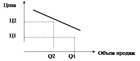 Любая цена, назначенная фирмой, так или иначе, сказывается на уровне спроса товара. Зависимость можно представить: