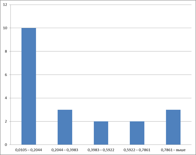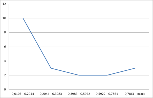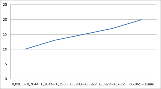 - осуществить группировку данных по 20 наименованиям, разделение провести на 5 групп,;
