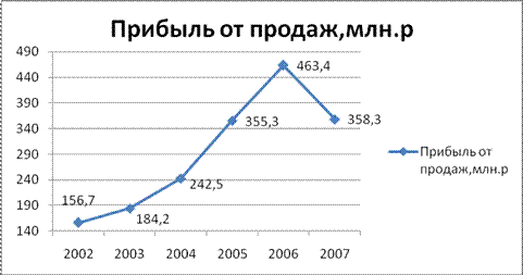 В последние годы деятельности ОАО «Акконд» наблюдается явный рост прибыли и объема продаж, что видно из следующих графиков: