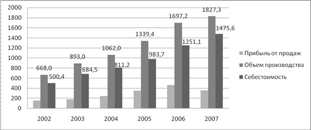 Из гистограммы видно, что объем выпускаемой и реализованной продукции нисколько не сократился, а также продолжил расти. Однако себестоимость выпускаемой продукции выросла в большом размере, чем объем выпускаемой продукции в отпускных ценах. Отсюда и значительное сокращение массы прибыли. Это подтверждается и показателями рентабельности, представленными в годовых отчетах предприятия: