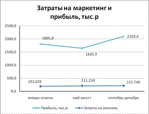 Соотнесем затраты на маркетинг и прибыль от продажи продукта по периодам: