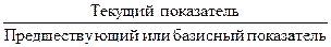 Рассчитанная. таким образом величина показывает, во сколько раз текущий уровень превышает предшествующий (базисный) или какую долю от последнего составляет. Если данный показатель может быть выражен кратным отношением, он называется коэффициентом роста, а если его домножить на 100%, то получится темп роста.