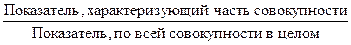 Относительный показатель структуры, выражается в долях единицы или в процентах. Рассчитанные величины (di), соответственно называемые долями или удельными весами, показывают, какой долей обладает или какой удельный вес имеет i-я часть в общем итоге.