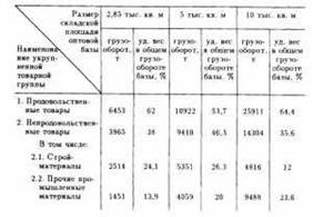 Рис. 73. Структура грузооборота торговых оптовых баз различной площади