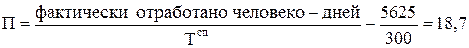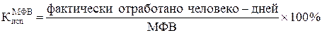 КФВ = ∑Я + ∑нЯ = 5625 + 5 + 570 + 2800 = 9000 чел.-дн.