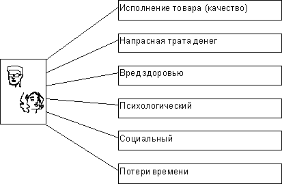 Проигрыш при покупке или получении услуги связан с риском купить товар плохого качества (например, он не будет работать должным образом), потерять деньги, нанести вред своему здоровью и здоровью близких, уронить достоинство и поколебать самоуважение, совершив покупку или воспользовавшись услугой в месте, несовместимом с представлением о собственном имидже и социальном статусе (например, покупка в магазине уцененных товаров), вызвать неодобрение друзей, коллег, партнеров (ровни по классу), наконец, впустую затратить время и усилия, так и не совершив покупки или не получив услуги.
