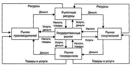 Современная экономика изобилует рынками. Производители ищут ресурсы (сырье, труд и деньги), чтобы купить их и превратить в товары и услуги, потом продать потребителям. Потребители продают свой труд и получают денежный доход, из которого расплачиваются за товары и услуги. Правительство собирает доход от налогов, чтобы купить ресурсы, производители и посредники на рынках используют эти товары и услуги, чтобы удовлетворять общественные нужды. И национальная, и глобальная экономики содержат комплекс взаимодействующих сетей рынков, связанных процессами обмена.