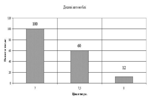 - в сегменті “дешевих” автомобілей покупців демонструють еластичний попит, при чому чутливість попиту по ціні є негативною та дуже високою, тобто основним фактором для покупця в цьому сегменті є ціна;