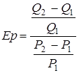 Еластичність попиту Ер у залежності від ціни товару можна визначити як співвідношення між відносною зміною попиту Q і відносною зміною ціни товару Р: