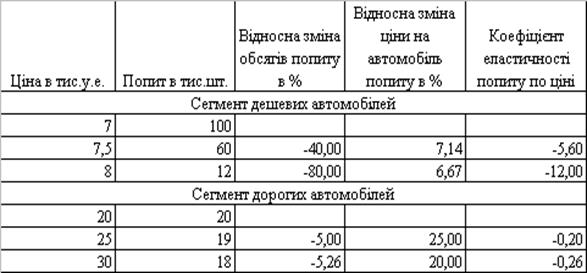 Розрахунки коефіцієнтів цінової еластичності попиту на автомобілі
