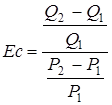 2. Коефіцієнт еластичності попиту Ер в залежності від ціни розраховується як співвідношення між відносною зміною попиту (обсягів попиту) Q та відносною зміною ціни на товар Р[3] :