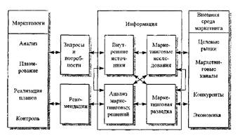 В процессе анализа, планирования, реализации и контроля реализации мероприятий маркетинга необходима информация о состоянии окружающей среды — о потребителях, конкурентах, дилерах, динамике спроса и т.д.