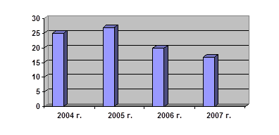 Рисунок 6– Объем товарной продукции (пирожные) за 2004-2007 г.