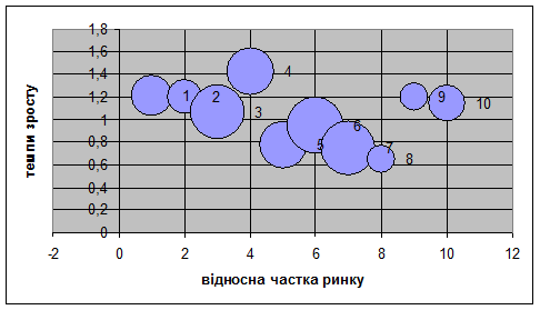 – типологічне угруповання по займаній частці ринку й темпам зросту обсягу реалізації.