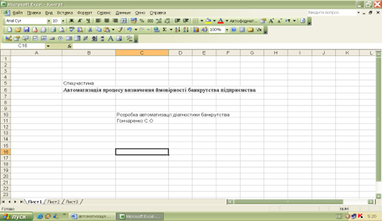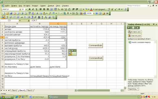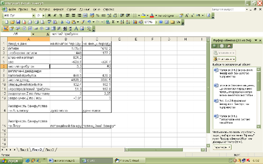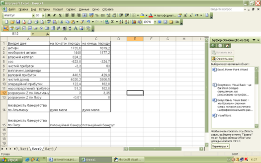 Рис. 3.9. Визначення ймовірності банкрутства підприємства таблиця EXCEL
