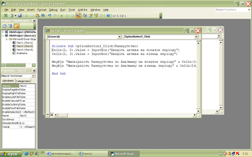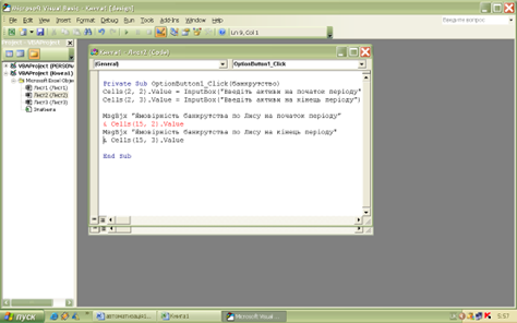 Рис. 3.14. Програмування в системі Visual Basic