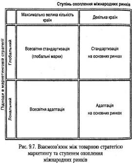 У міжнародному маркетингу для оцінки впливу зазначених сил на обрання маркетингової стратегії, використовують матричний підхід (рис. 9.1).