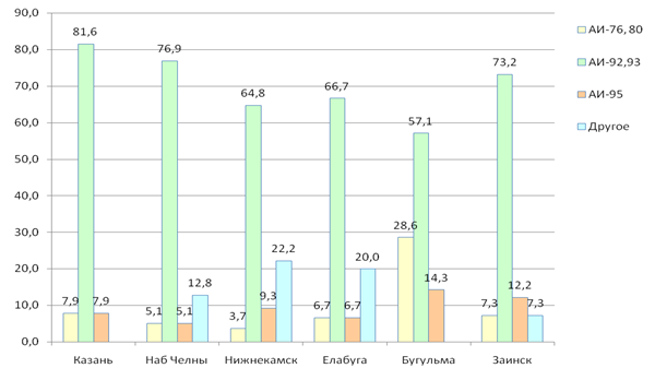 Маркетинговое исследование предпочтений потребителей горюче-смазочных материалов и автозаправочных станций было проведено в городах Республики Татарстан (Казань, Набережные Челны, Нижнекамск, Елабуга, Бугульма, Заинск). Исследование проводилось в местах скопления автомобилистов – в торговых центрах, на рынках, возле гипермаркетов, на автостоянках. Во избежание перекоса мнений относительно атрибутов опрос намеренно не проводился на автозаправочных станциях городов.
