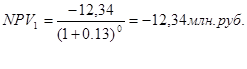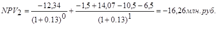 Чистый приведенный доход в 2011 году, также как и в первом случае остается на уровне инвестиций проекта, т.е. в размере -12,34 млн. руб.
