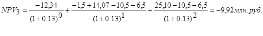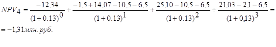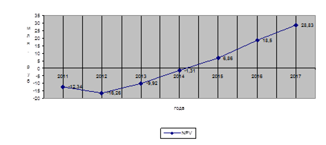 Чистый приведенный доход в 2011 году, также как и в первом и втором случаях остается на уровне инвестиций проекта, т.е. в размере -12,34 млн. руб.
