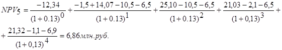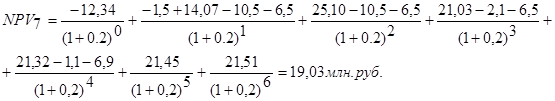 Чистый приведенный доход в последнем исследуемом нами году составит 19,03 млн. руб.