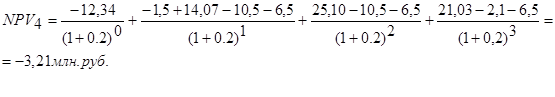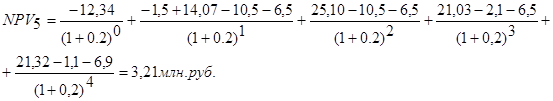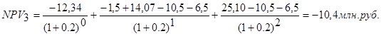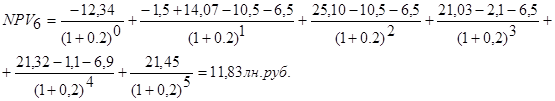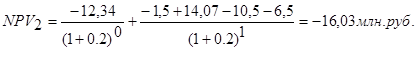 Чистая приведенная стоимость инвестиционного проекта в 2012 году при ставке дисконтирования 20% составила бы – 16,03 млн. руб.