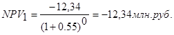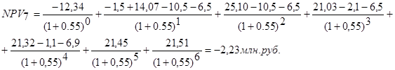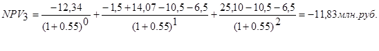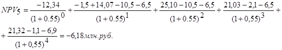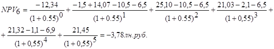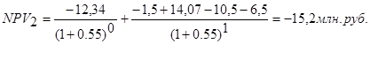 Чистая приведенная стоимость инвестиционного проекта в 2012 году при ставке дисконтирования 55% составила бы – 15,2 млн. руб.