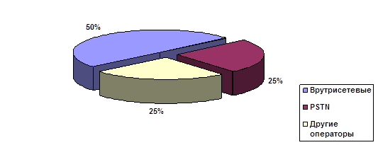 Для расчетов было использовано следующее распределение звонков по направлениям: