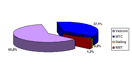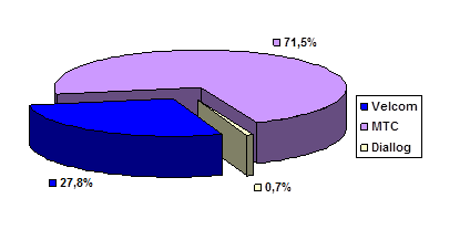 В данном разделе рассмотрены основные показатели операторов мобильной связи, работающих на территории Республики Беларусь. Будут рассмотрены компания Velcom и основные её конкуренты COOO «Мобильные ТелеСистемы» (далее МТС) и ООО СП «БелСел» (далее Diallog и NMT). Все цифровые данные даны на октябрь 2003г.