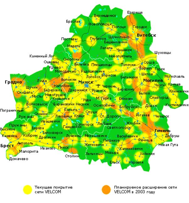 Таким образом, на основании вышеперечисленных фактов можно сделать вывод о том, что одним из приоритетных направлений политики распределения компании Velcom является расширение зоны GSM покрытия.