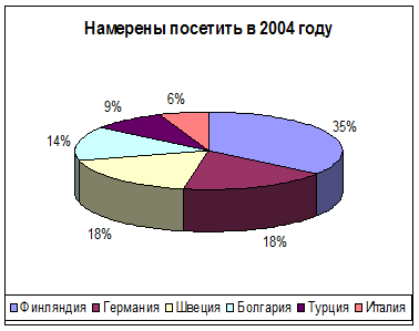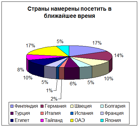 Туристическая компания «Евразия тур» провела собственное исследование для того, чтобы узнать данные о посещаемости стран туристами Санкт-Петербурга. Это исследование проводилось в декабре 2003 года. Данное исследование проводилось методом анкетирование (см. ПРИЛОЖЕНИЕ 2).