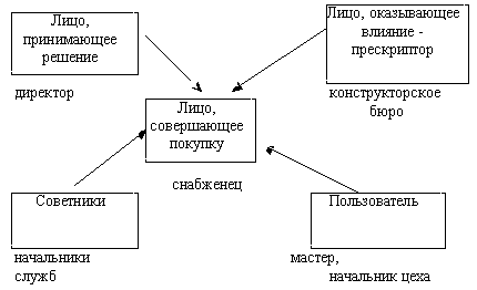 Описанный выше анализ процесса закупки, целью которого является выявление всех лиц, участвующих в процессе принятия решения о закупке, представляет собой модель поведения промышленного покупателя с выделением «покупающего центра» (рис. 2).