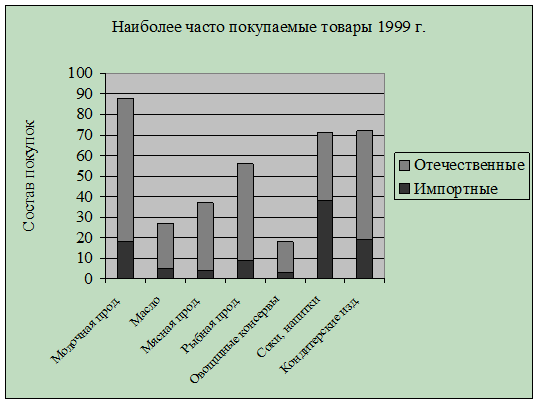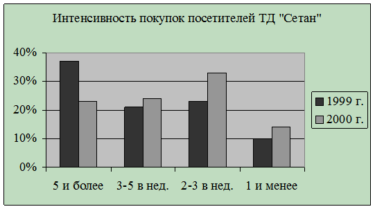 В аналитической части анализируются: состояние рынков, определяются основные конкуренты и проводится позиционирование торговых точек ТД «Сетан» и основных конкурентов в динамике за 1999-2000 годы. Приводится исследование и даются рекомендации по формированию и продвижению товарного ассортимента. Необходимо уточнить, что полученные данные по торговым точкам ТД «Сетан» приемлемы только для торговых точек ТД «Сетан» и не могут быть использованы в масштабах всего города Новокузнецка. Проведенное исследование заключалось в анализе средств массовой информации, посещение торговых точек конкурентов, собеседовании с торговыми менеджерами ТД «Сетан» и опросе покупателей, проведенном в виде анкетирования. Опрос проводился детерминировано среди покупателей ТД «Сетан», в трех его точках. В ходе анкетирования было опрошено 120 респондентов. Критерием выборки являлась покупка определенных видов продовольственных товаров.