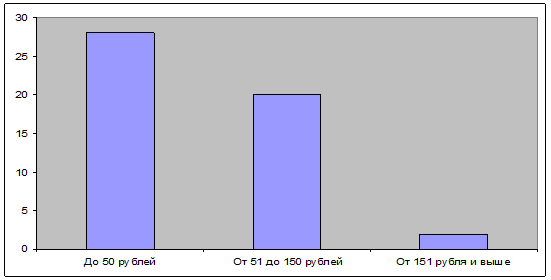 ❏ До 50 р. ❏ От 51 до 150 р. ❏ От 151 и выше