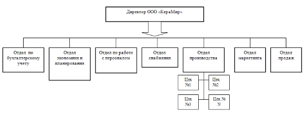 Непосредственно на предприятии ООО «КераМир» (и в других дивизионах) имеется линейную ОСУ, где все подразделения (технология, производство, бухгалтерия, маркетинг, сбыт и др.) подчиняются линейному руководителю.