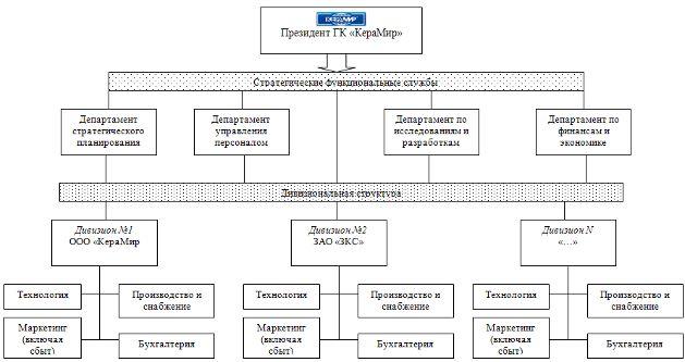 Группа компаний ООО «Керамир» имеет мультидивизионную организационную структуру управления (ОСУ) – структуризация дивизионов (производственных предприятий) произведена по выпускаемой продукции.